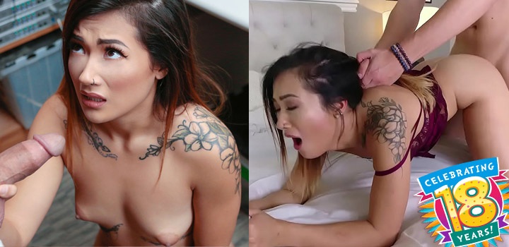 Lulu Chu keeps surprising us each time we'll get to watch her make another huge cock disappear by riding on top. She's the type that doesn't mind getting her soaking wet, young, pornstar pussy pounded by a hung pornstar colleague (or a dildo, for that matter).